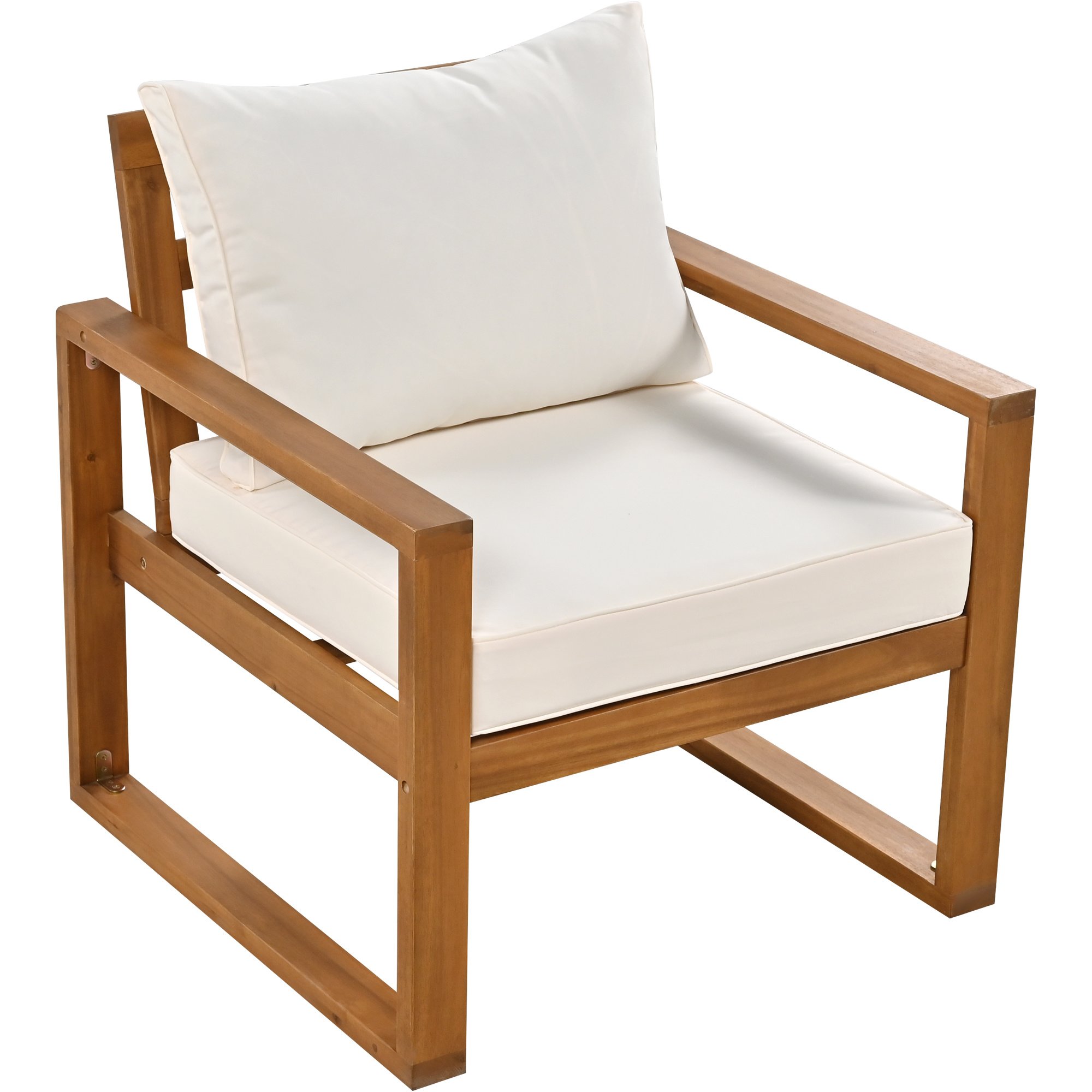 Crafted from premium acacia wood; this patio conversation sofa set features dense texture; durability; and resistance to weathering. Patio chat set with this eco-friendly hardwood is perfect for outdoor element; showcasing rich; natural hues and grains that add a touch of sophistication to any patio or deck.